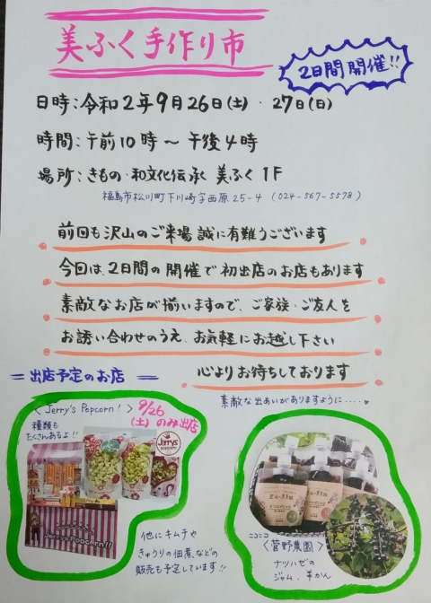9/26(土)9/27(日)美ふく手作り市ご案内